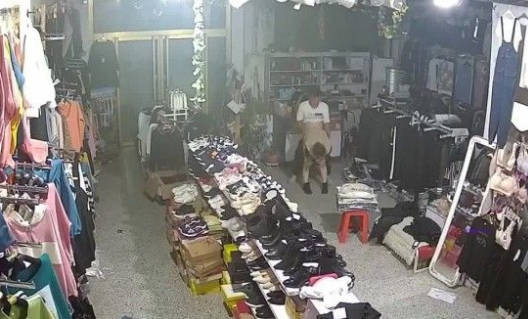 偷拍店铺打烊后老板和收银员在凳子上偷情啪
