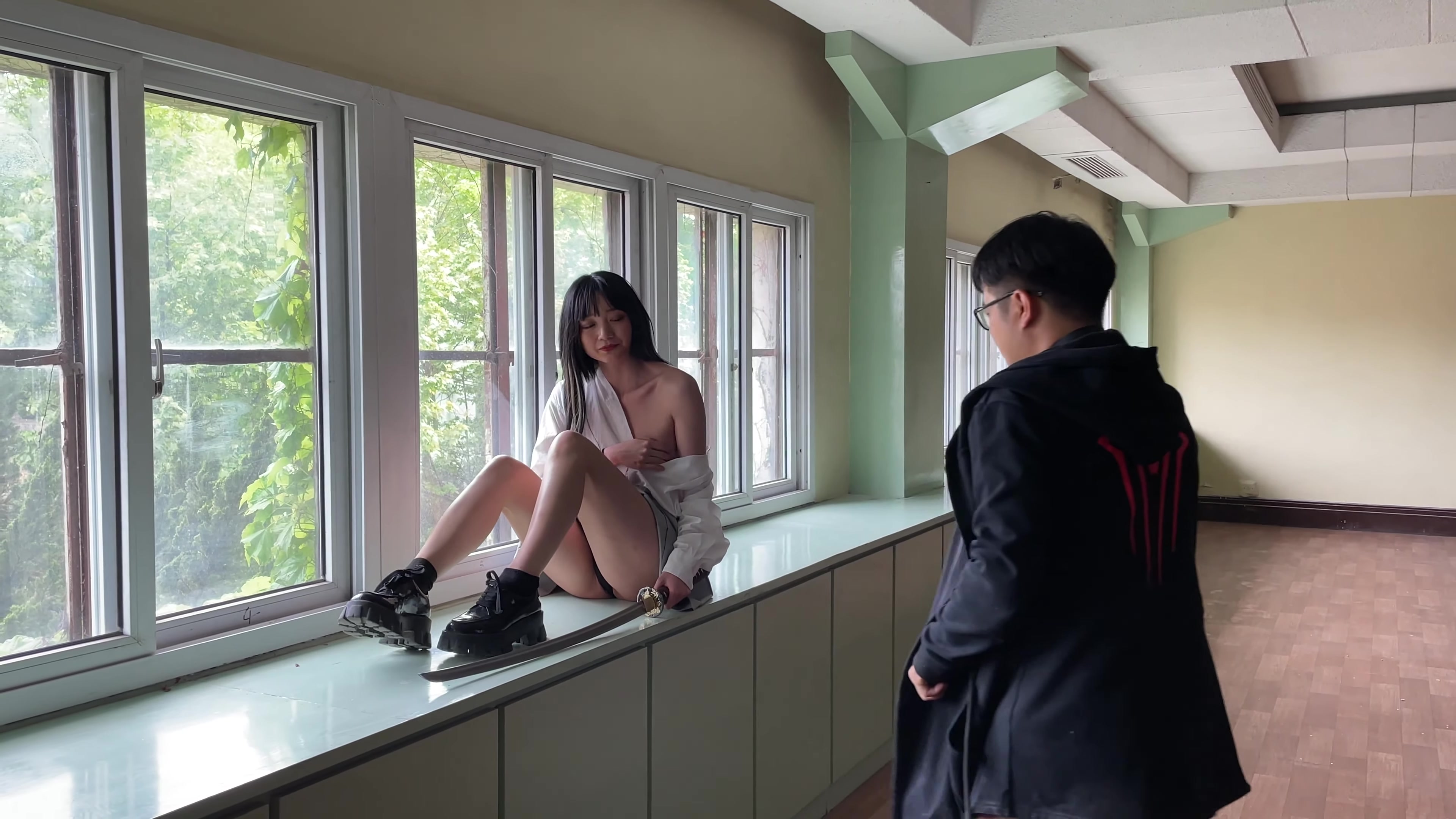 圈内高端人体艺术摄影师Rock|废弃学校人体摄影真实花絮,出镜小A,年轻漂亮女神级别三点全露